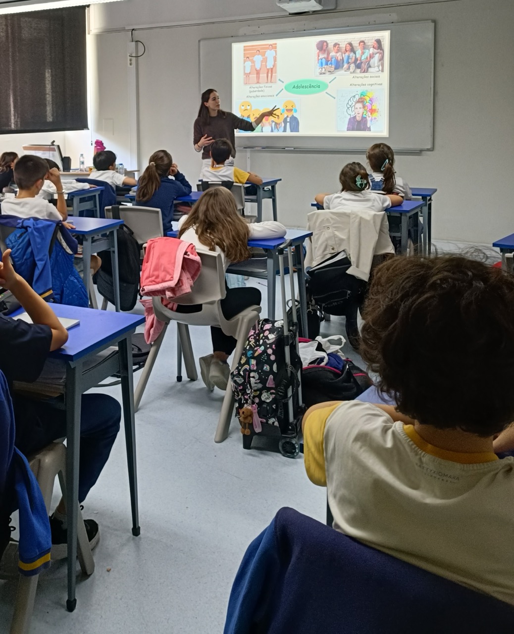 Quais são as alterações que a entrada na adolescência acarreta? E qual o lugar das emoções, dos amigos e do elogio nesta equação? Haverá receita para o elogio? Foram questões com as quais os alunos do 5.° ano foram confrontados, no âmbito da disciplina de Cidadania e Desenvolvimento, na semana passada. Guiados pela Dra. Mariana Brito, os alunos iniciaram, de forma original, concreta e simples, o processo de descoberta desta nova fase de vida em que estão a entrar.
