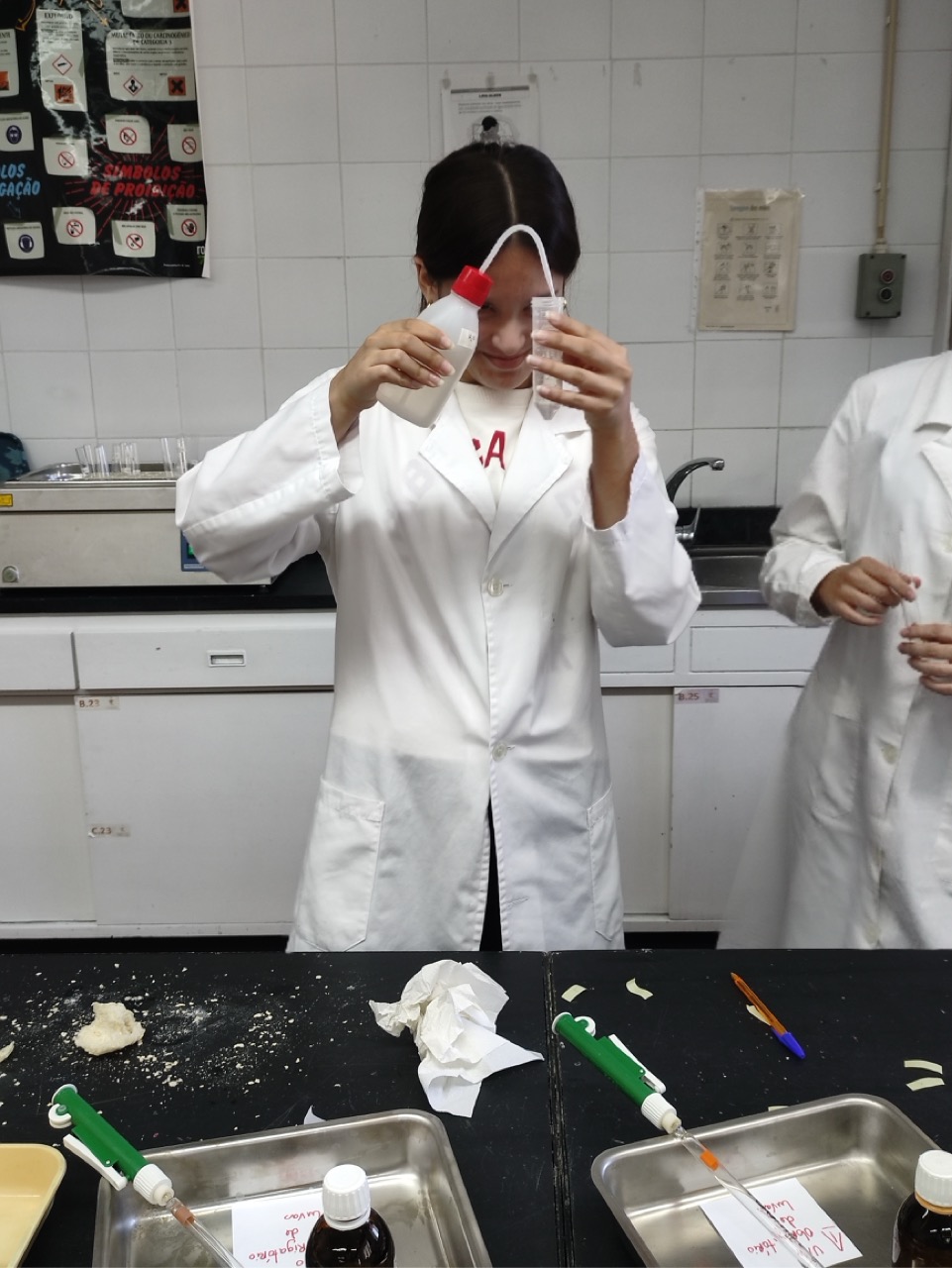 Os alunos tiveram a oportunidade de observar experimentalmente como a atividade da amilase salivar é afetada por variáveis como o pH, a temperatura e a fragmentação dos alimentos. No final, mais do que o aparato das bancadas de trabalho, ficou o fortalecimento do conhecimento adquirido e a certeza de que a ciência, mesmo quando desafiadora, é um poderoso instrumento de descoberta e compreensão do mundo ao nosso redor.