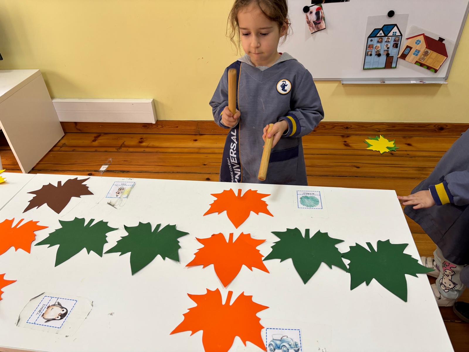 O outono chegou cheio de música e cores. Recolhendo e escutando elementos do exterior, o pré-escolar envolveu-se na descoberta desta estação através das artes, com pintura com elementos da natureza, coroas de folhas, ritmos divertidos e movimentos ao som de Vivaldi.