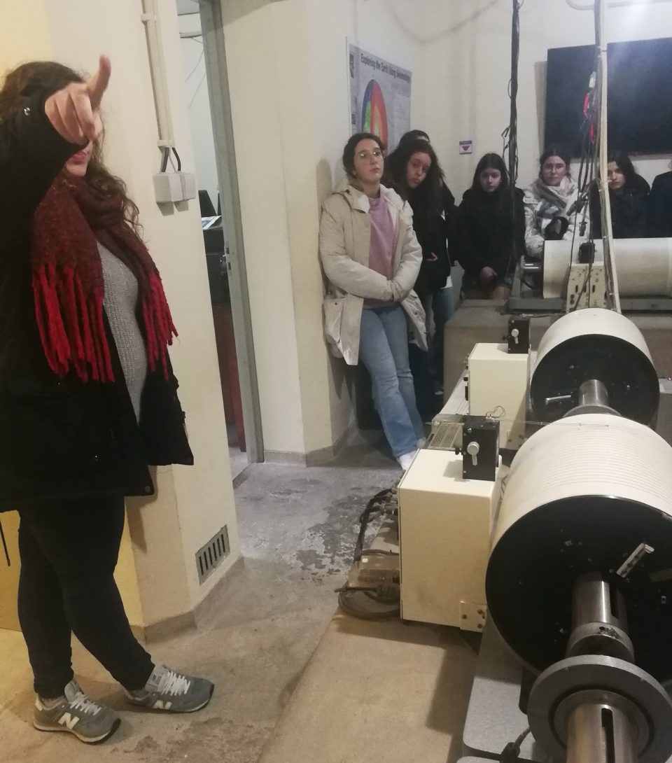 Durante a visita, exploraram instalações e equipamentos utilizados na monitorização sísmica e meteorológica. Assistiram a uma demonstração da evolução dos instrumentos sismológicos e compreenderam de que forma se constrói o modelo da estrutura interna da Terra com base nos registos sísmicos.