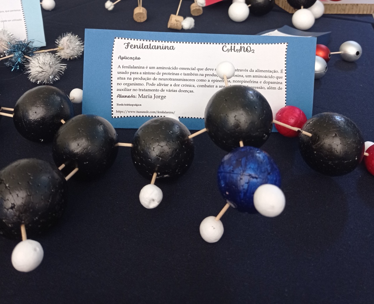 Nas duas últimas semanas, os alunos do 8.º ano mostraram à comunidade escolar o seu empenho e criatividade ao participarem numa atividade do projeto Ser + Criativo. Aliando o projeto Ser + ao projeto Eco-Escolas, foram construídas, durante as aulas de Físico-Química, várias moléculas representativas de substâncias do quotidiano, utilizando materiais reutilizáveis e/ou recicláveis. Além de estimularem a criatividade, os nossos alunos aprenderam um pouco mais sobre algumas substâncias que já conheciam e puderam aplicar os conhecimentos adquiridos em Físico-Química.