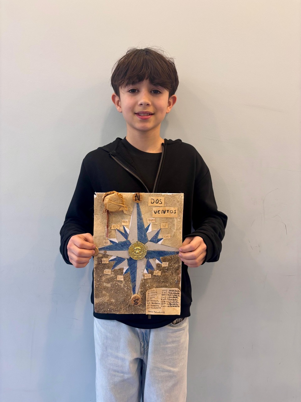 Os alunos do 7.º ano foram desafiados a construir uma rosa dos ventos utilizando apenas materiais reciclados. O júri, composto por membros da comunidade escolar, avaliou os trabalhos com base na precisão geográfica, criatividade e utilização de materiais reciclados. O vencedor foi o aluno Vasco Parente.