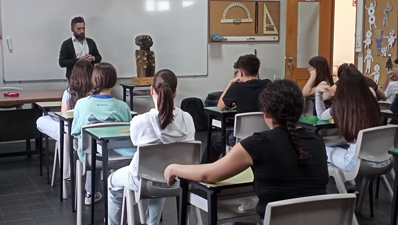 No âmbito do projeto “RePENSAR – A Arte de Refletir”, os alunos do 9.º ano tiveram a oportunidade de receber, na sala de aula, a visita do escultor Óscar Rodrigues, que apresentou uma obra inspirada na temática central do projeto.